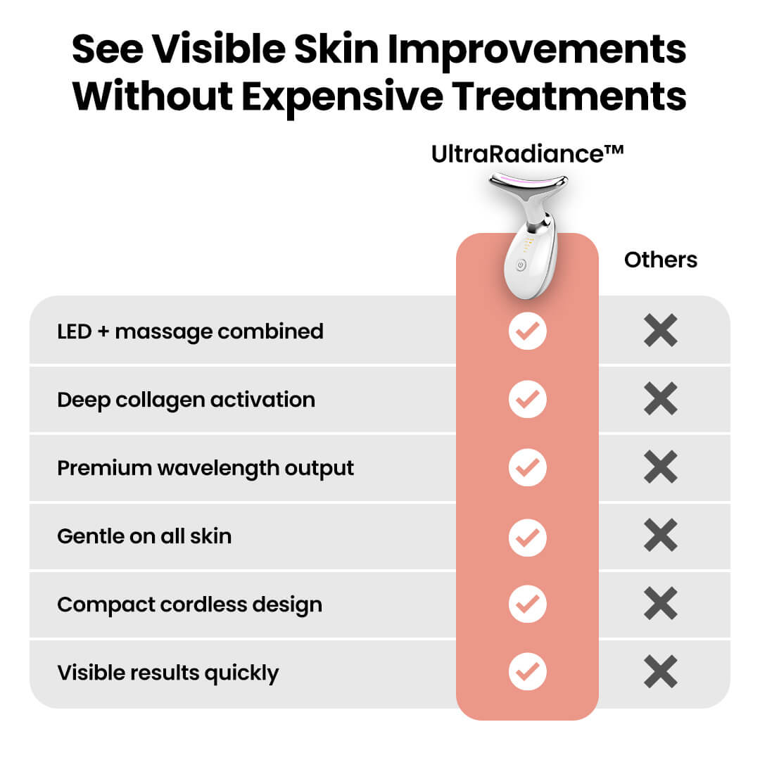 The UltraRadiance™ Massager uses light therapy and gentle massage to reduce fine lines, firm skin, and enhance radiance.